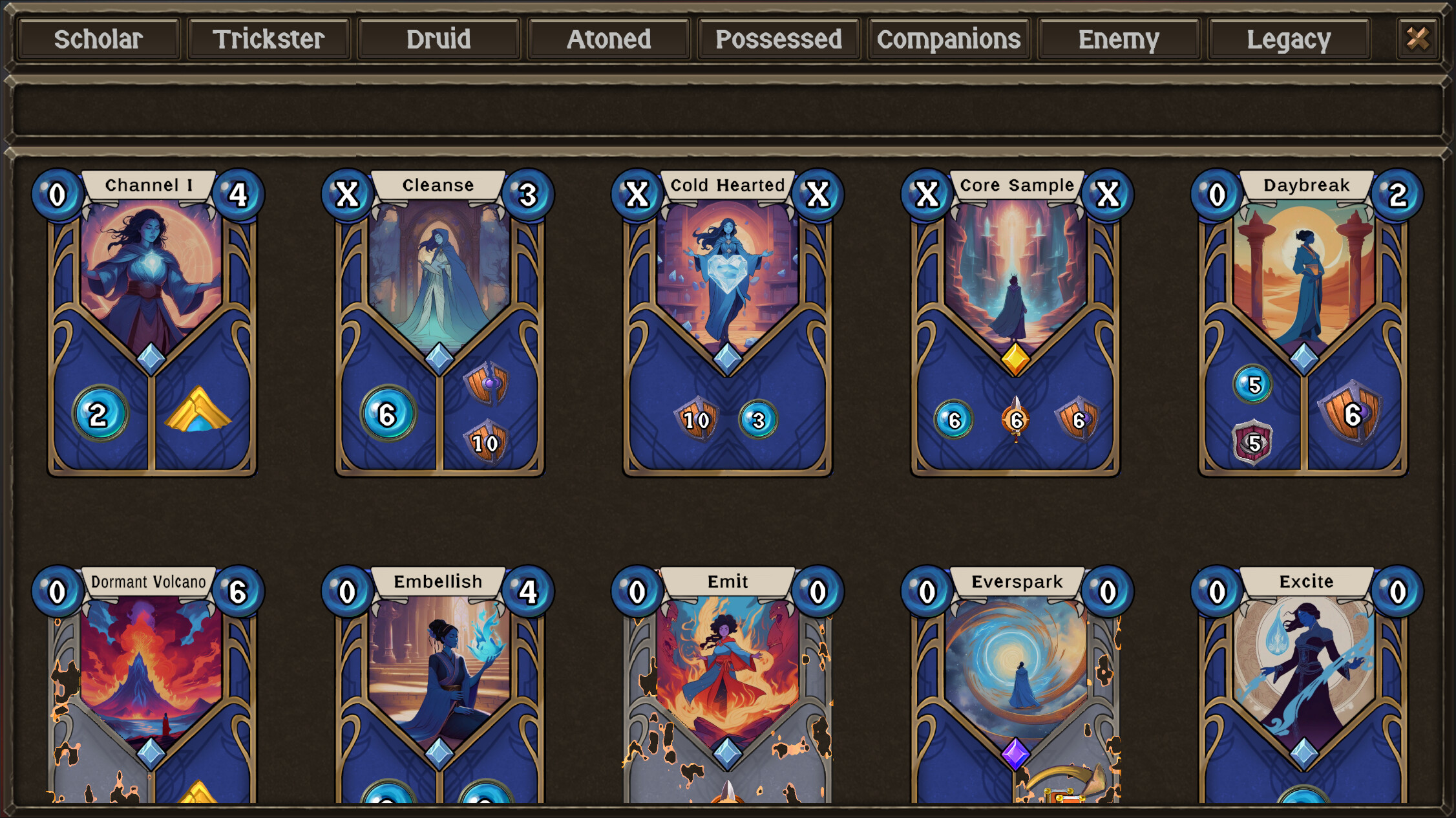 Some of you may be doing a bit of quick math here. I’ve accounted for four sides of each die. What about the other two? Those are marked with X’s. X’s act as a sort of fifth suit in Mori. In addition to the dice, each player starts the round with two X cards in hand. These, like the dice, can be played into any trick, and it is highly unlikely they’ll win. Even if an X does win, worse things have happened. An X on its own is harmless. It’s the aggregation you have to watch out for when the time comes for round scoring. First things first: the round ends when the supply of dice in the middle runs out, not when players run out of cards. All the cards are worth anywhere between -2 and 3 points. Any cards you have left in your hand at that point go into your scoring pile. Keep in mind, the players who won tricks got dice, and if they played those dice, they may have more cards left to score. Additionally, the player with the most X’s loses one point for every X they’ve got. The player with the second-most X’s, on the other hand, gains a point for every X they have. Rune Factory 5